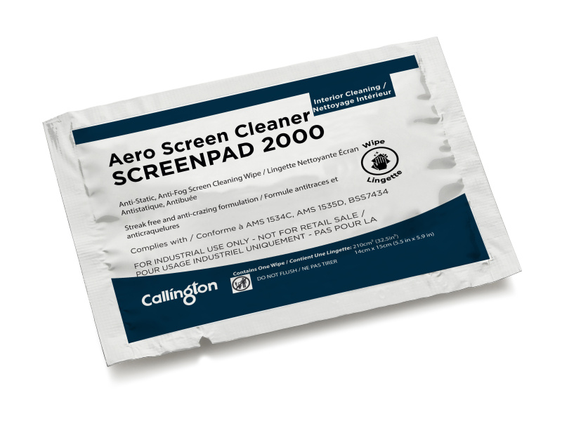 SCREENPAD 2000 is an aircraft approved, anti-static screen cleaner used by both cabin crew and line maintenance cleaning teams. It is designed to clean and eliminate the negative effects of static electricity on cabin windows, the aircraft's windscreen, aircraft equipment screens, computers, instrument panels, optical parts of navigation systems and HUD, and all types of screens.